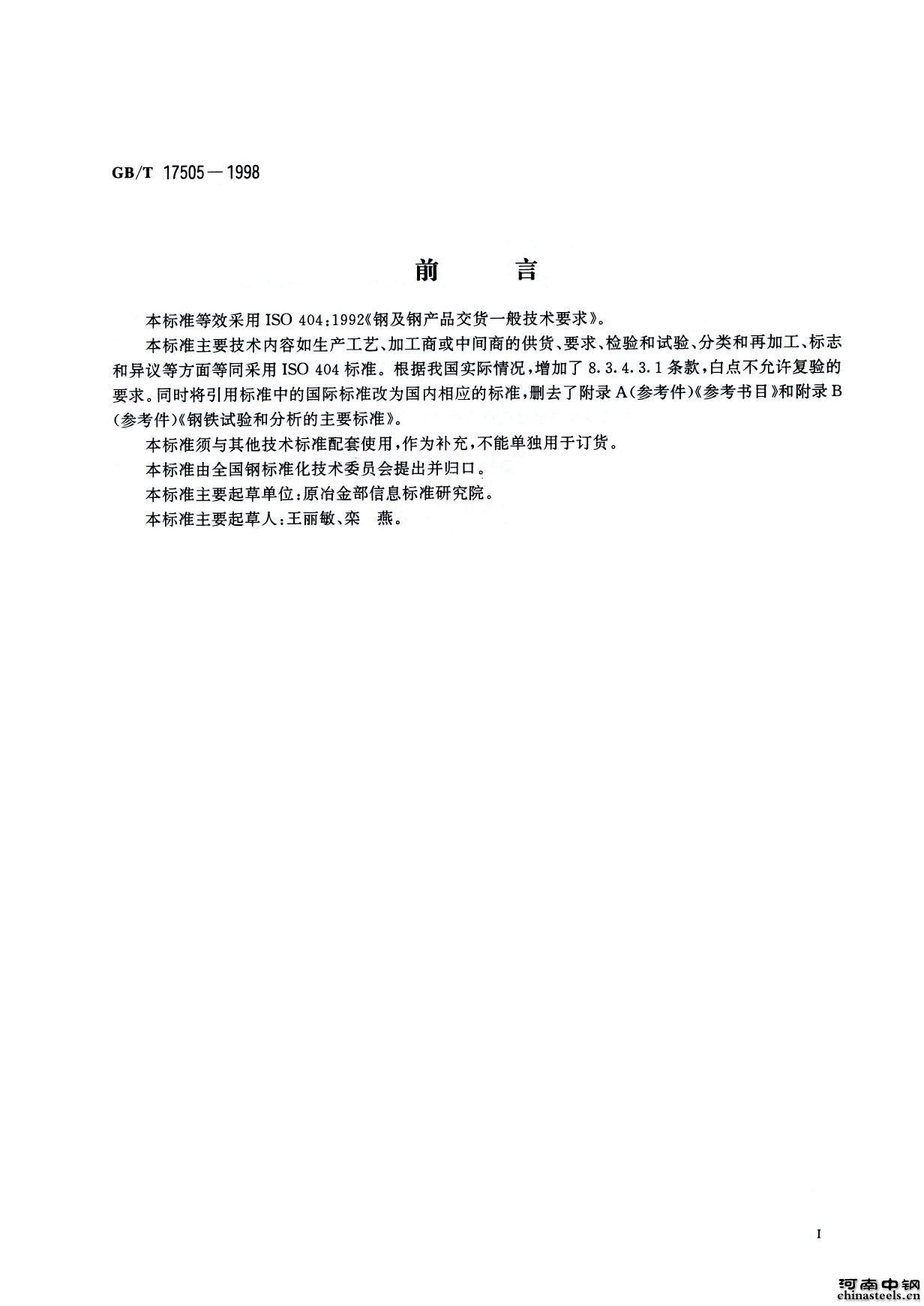 GB/T17505-1998钢及钢产品交货一般技术要求